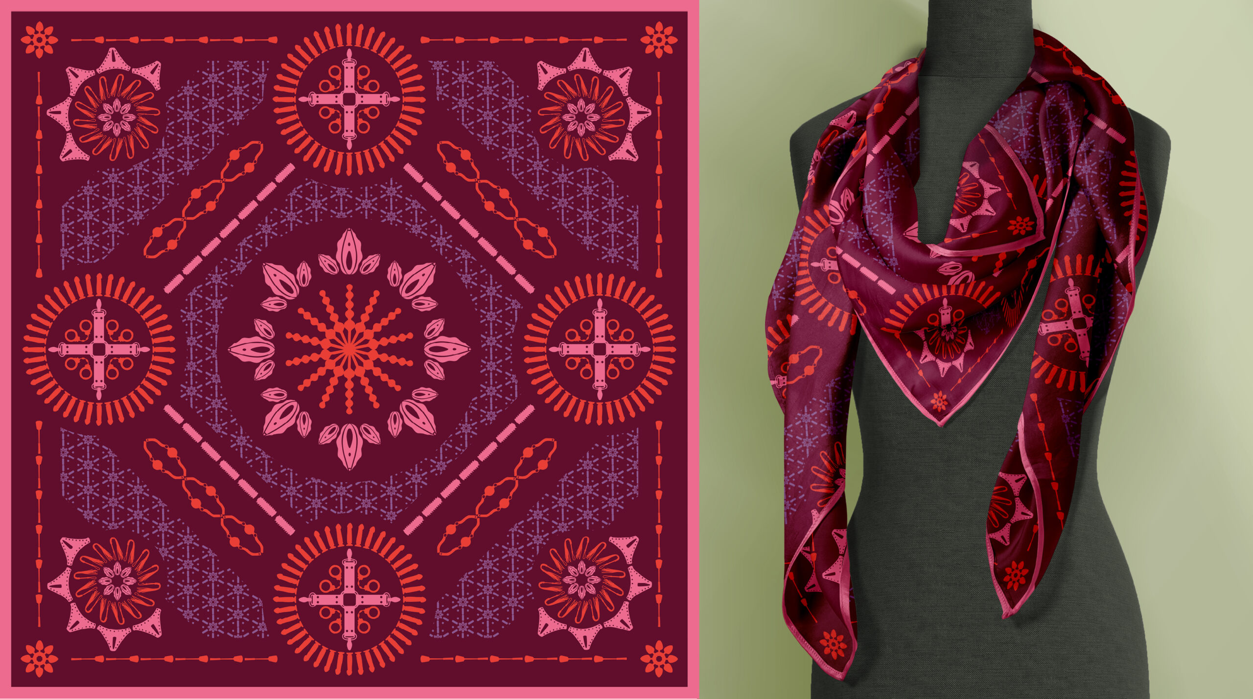 Lightweight scarf, silk, satin, cotton, or Paris Chiffon | W: 90 x H: 90 cm | W: 35.5 x H: 35.5 in