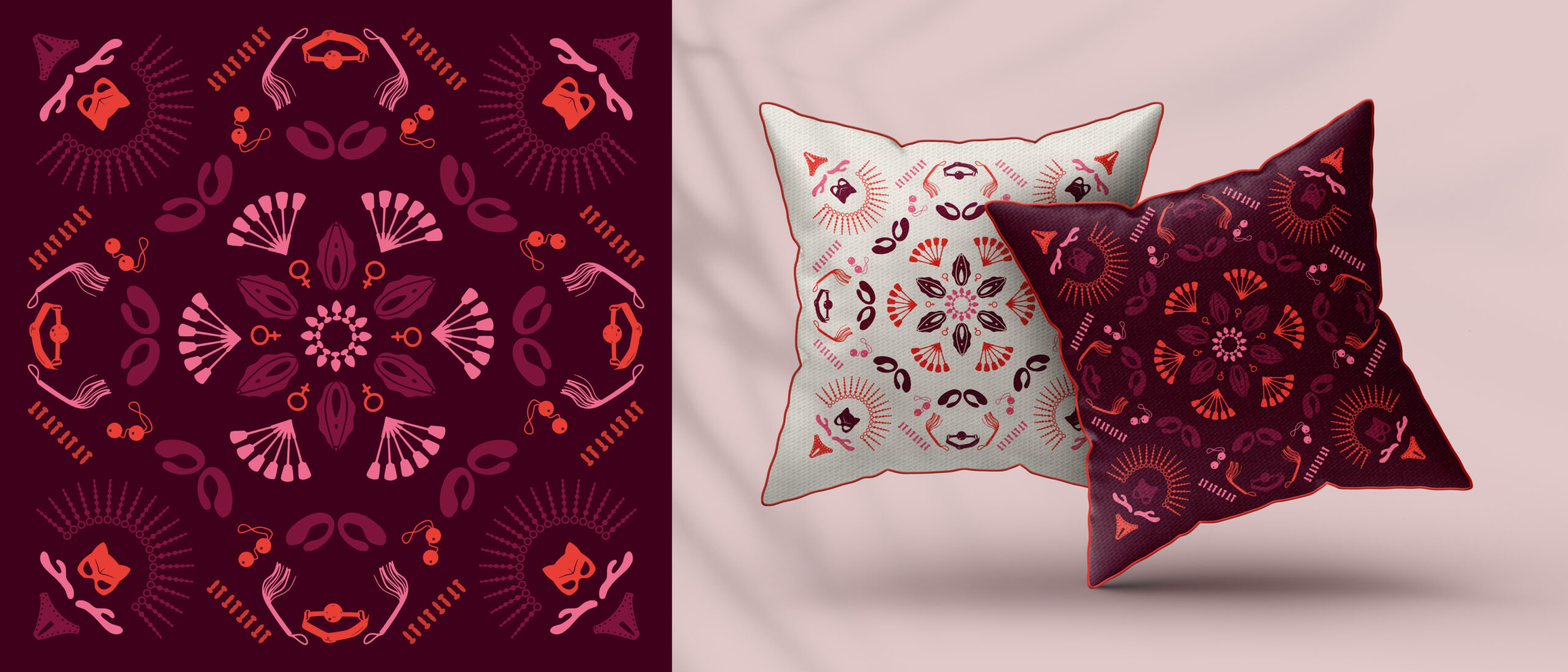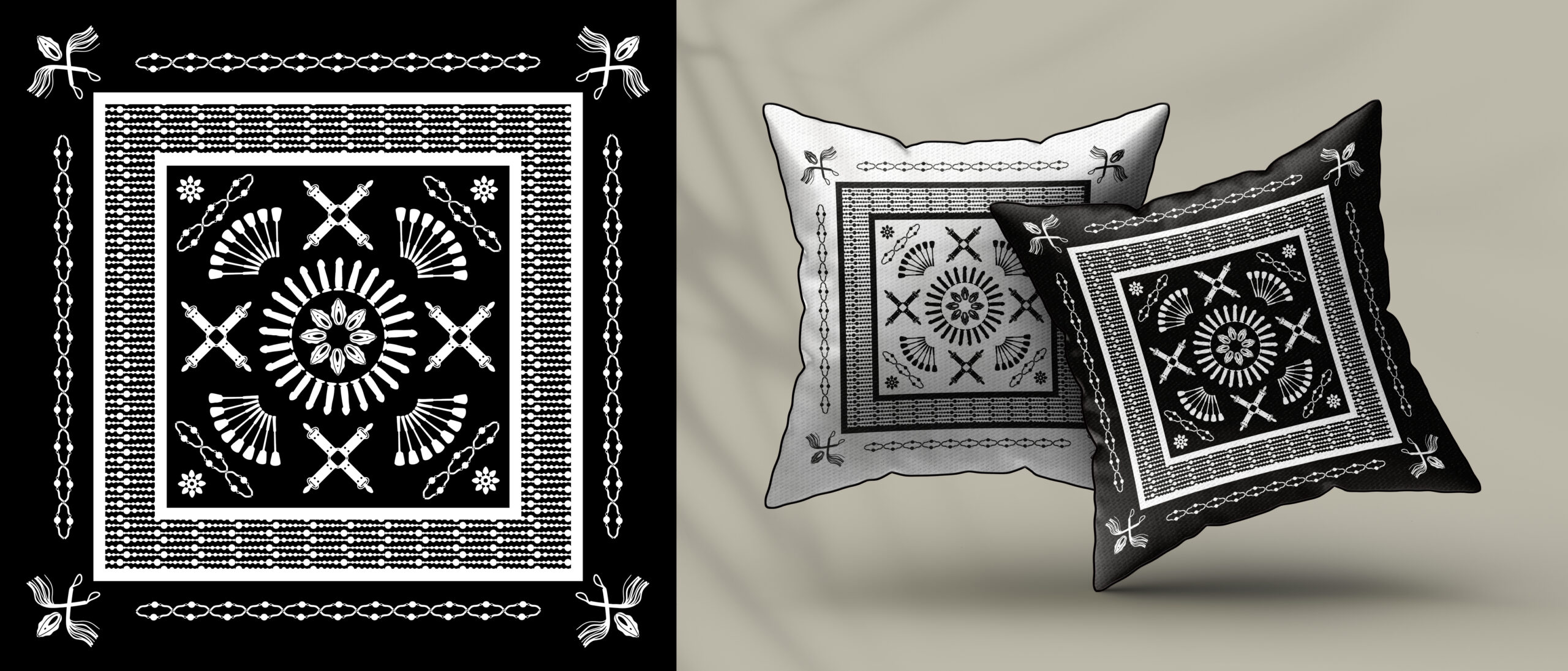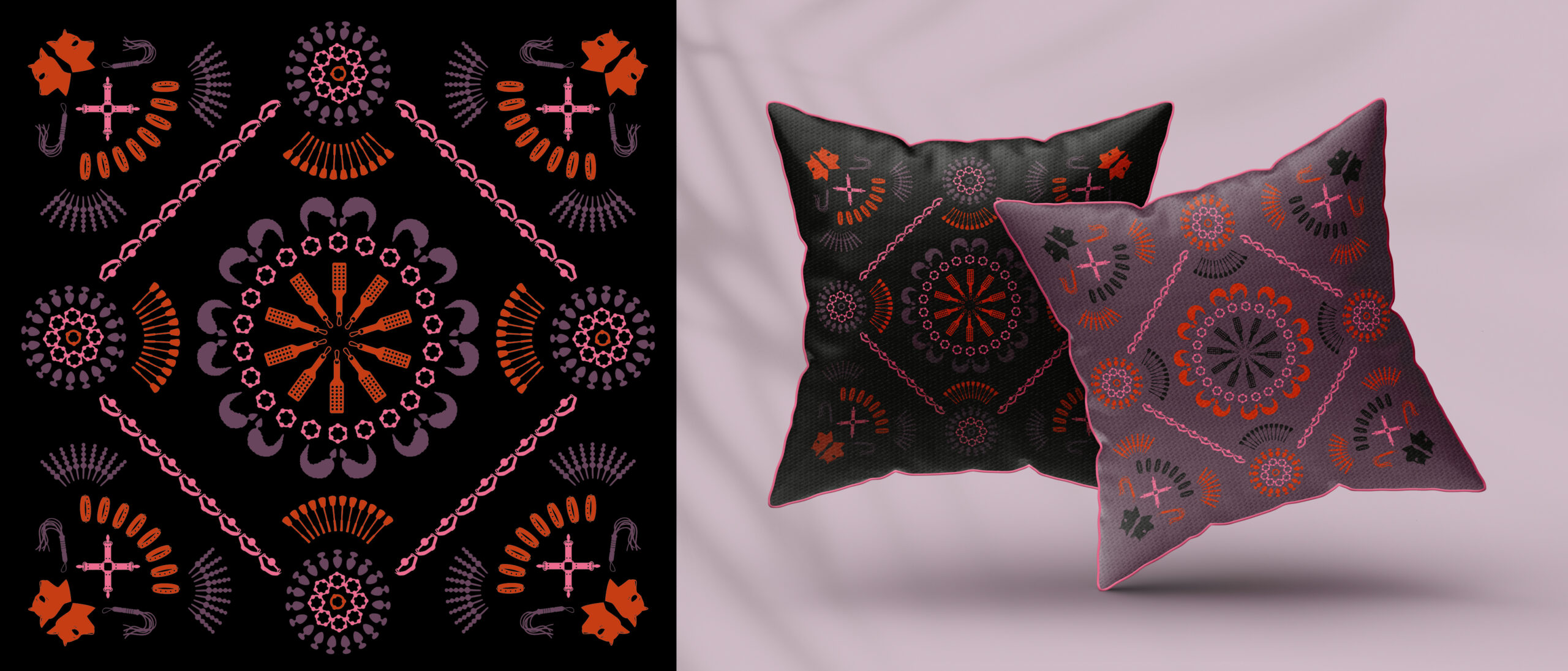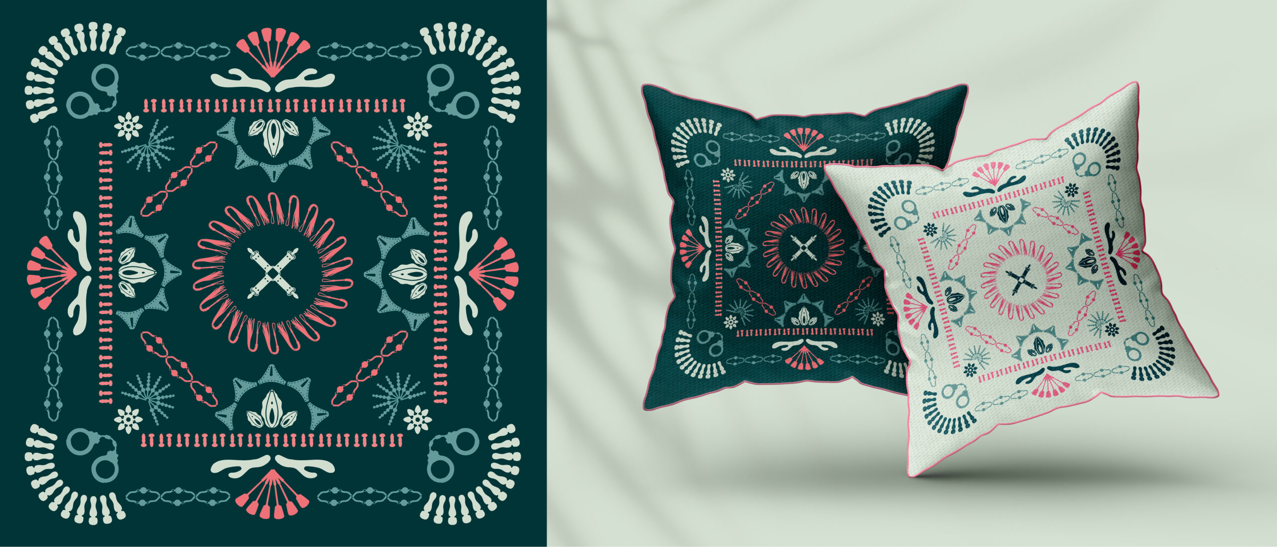 Different print on front and back, contrast edging | Dimensions: W: 30 x H: 30 cm | W: 12 x H: 12 in